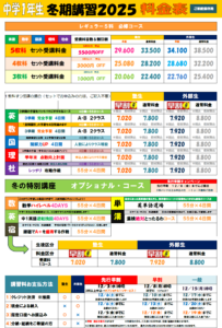 【3】中学1年生 冬期講習 料金表