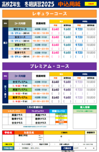 冬期講習の料金が、内部生料金となります。