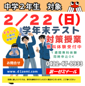 2月中は 定期テスト対策のイベントもあります!