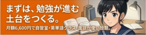 月額6,600円の基本料金プランで、自習室利用・参考書貸出・面談申込・英単語クラス参加など、高校生が学習を続けるための土台を整えます。